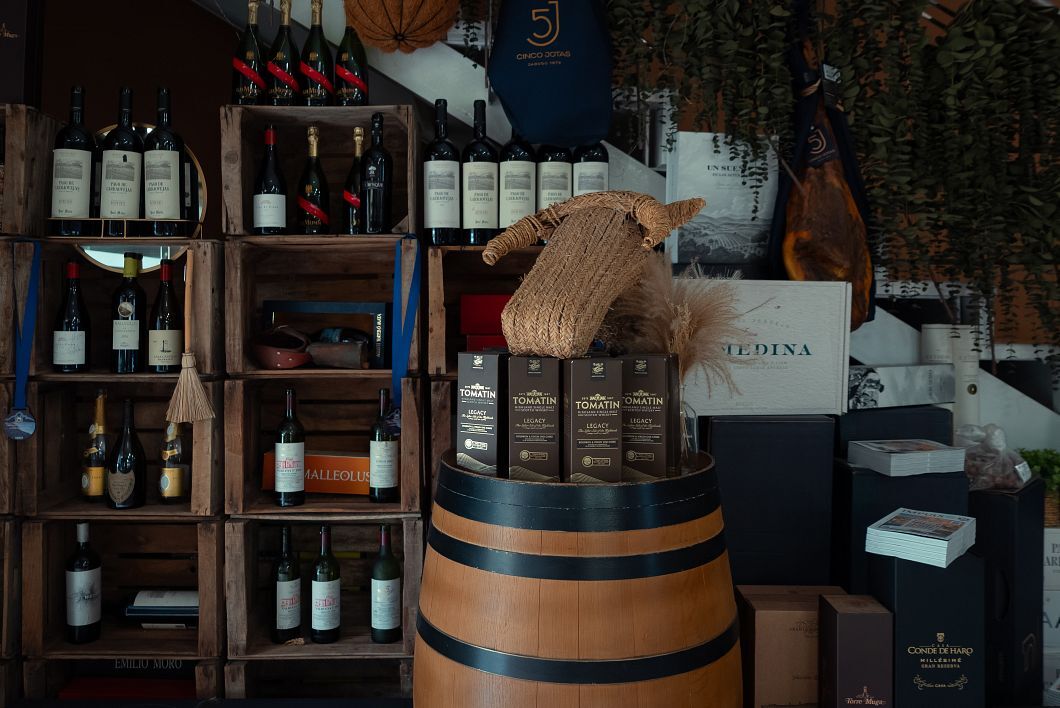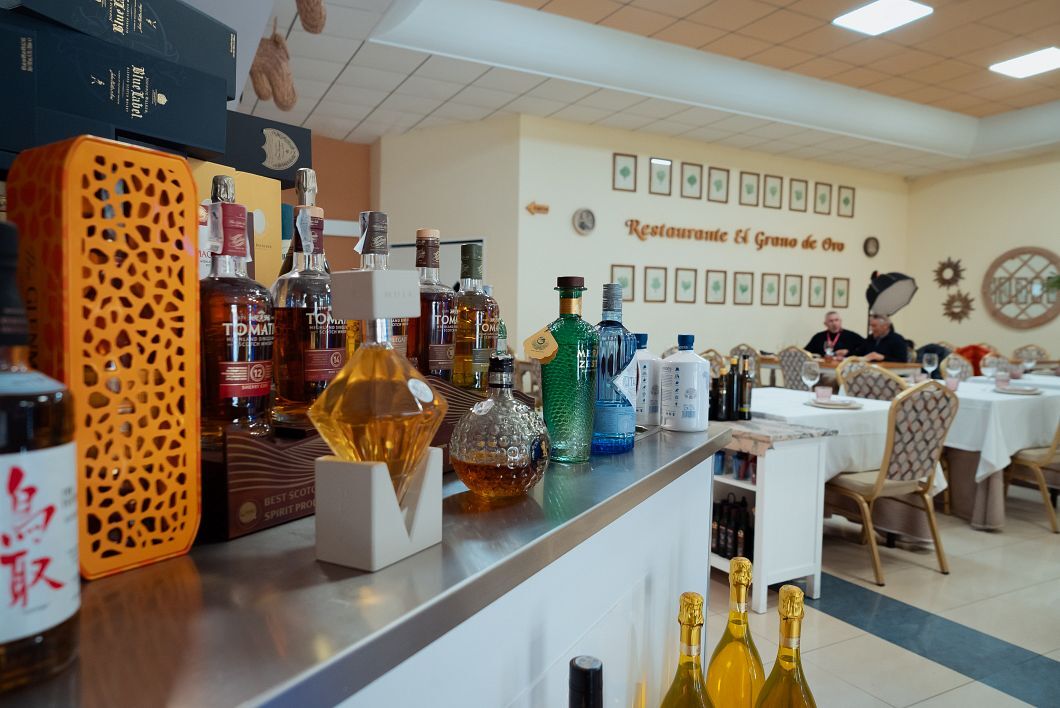 Llama especialmente la atención la magnífica y muy bien seleccionada bodega, con etiquetas de alto valor, tanto de las cepas riojanas como de las tierras de la Ribera del Duero, sin olvidar algunos caldos de Alicante y Jumilla. Una bodega tan bien surtida responde al tipo de clientela que visita El Grano de Oro muchos días laborables.