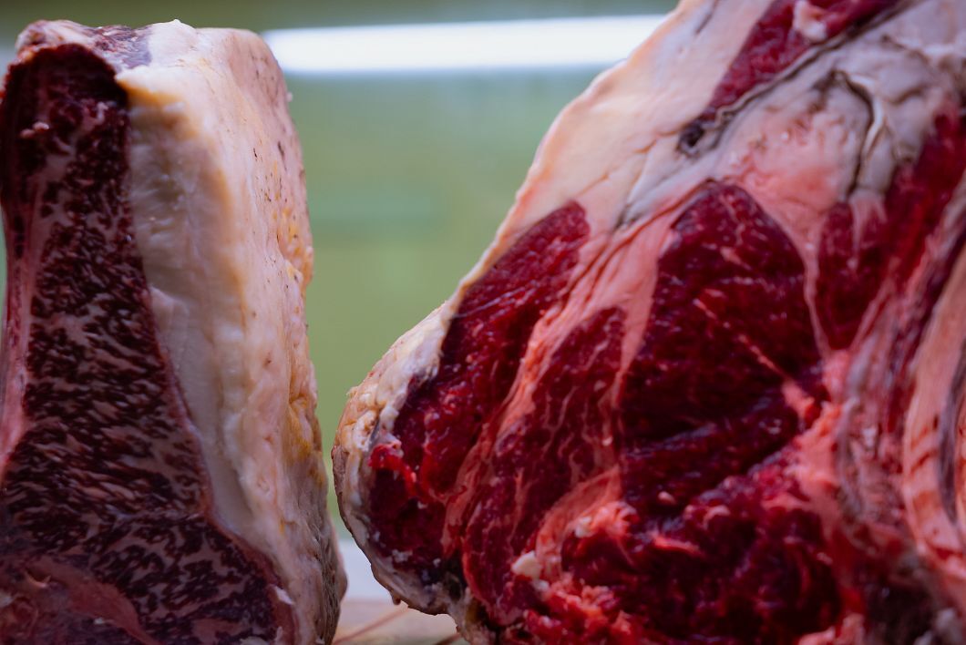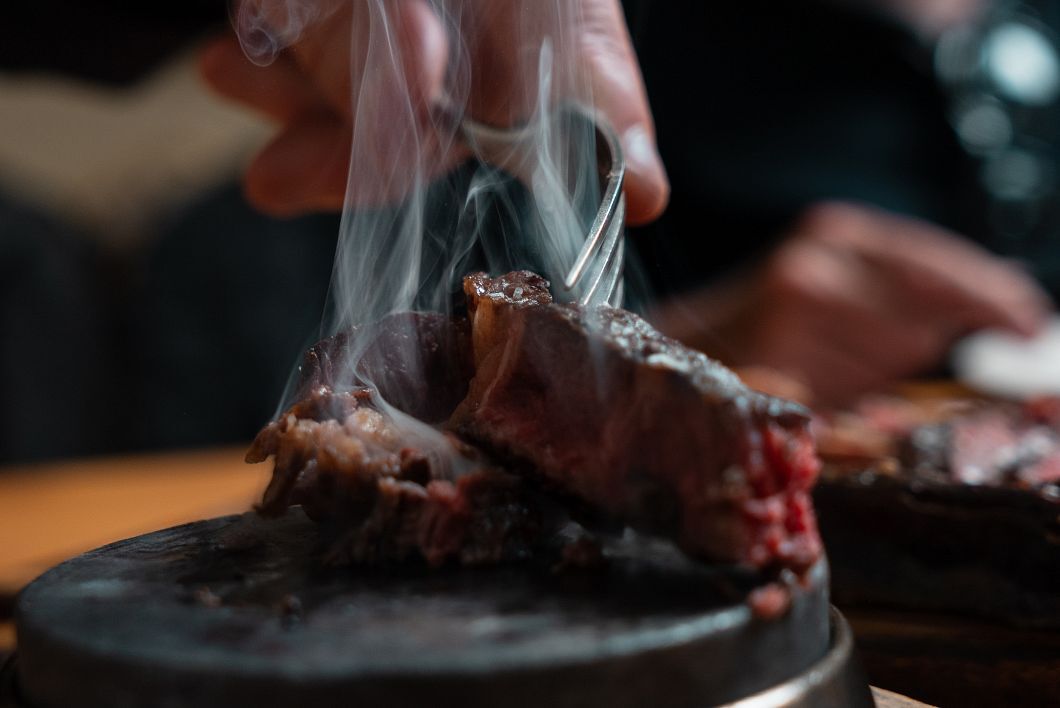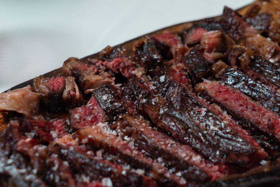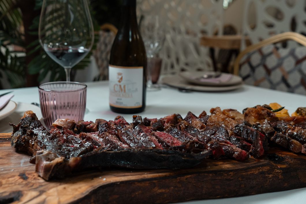 Otra seña de identidad inconfundible es la calidad y el tratamiento que dan a las carnes. Chuletón de vaca rubia gallega, chuletón de buey, wagyu, Angus, chuletas de chato murciano, de cordero segureño, en fin, el sueño de los carnívoros.