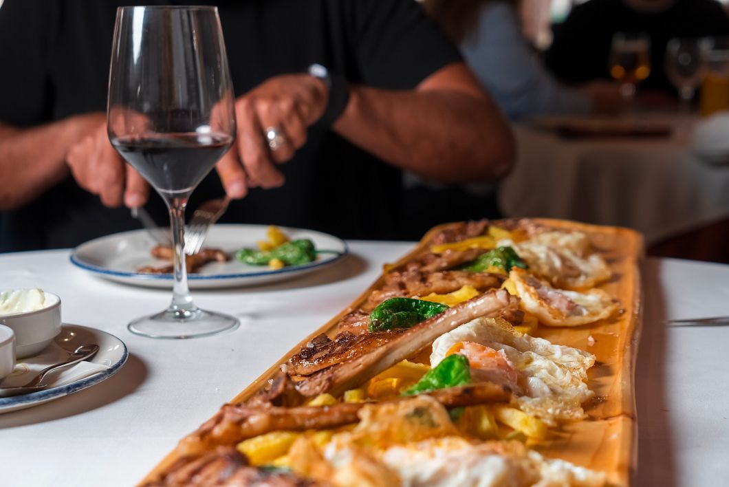 Uno de los platos estrella -y que más éxito ha tenido entre la nutrida concurrencia- es "Superbarco de chuletillas y huevos camperos", una tabla de cerca de dos metros bien surtida de cordero, huevos, pimientos y patatas fritas, un verdadero hallazgo que hace furor entre los clientes.