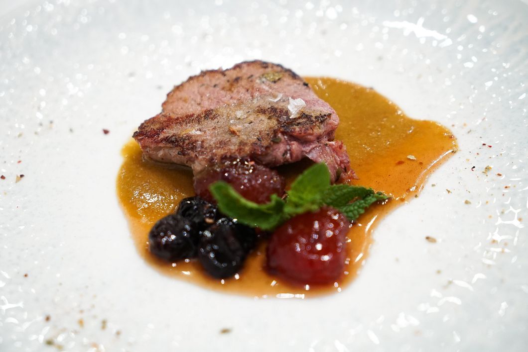 La textura sedosa de sus alcachofas confitadas con jamón y su salsa de pilpil, la paletilla de cabrito a la murciana, evocadora de los sabores del mítico Rincón de Pepe, y las manitas de cerdo, inolvidables por su sabor y textura.