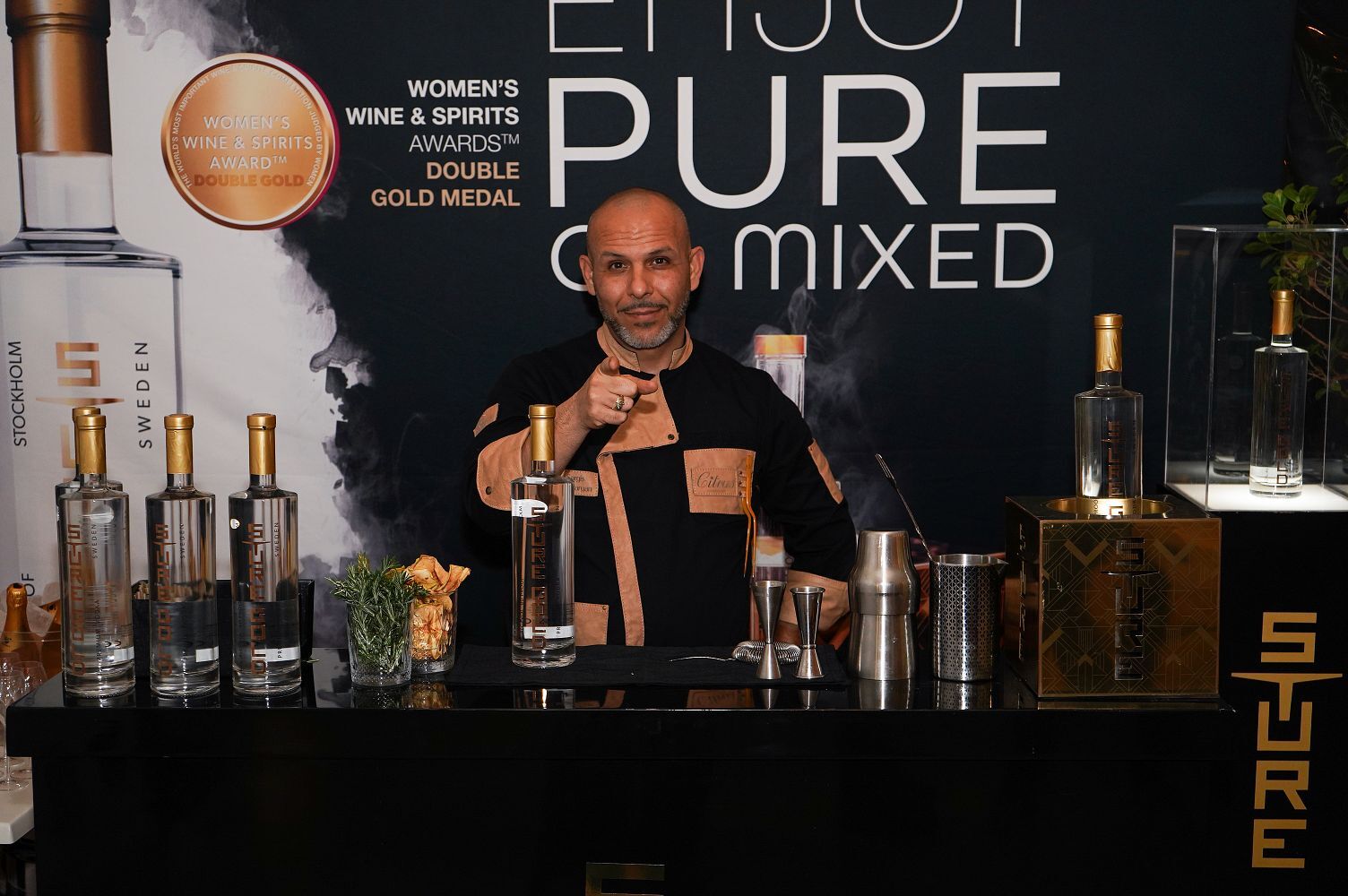 “Esta bebida es el resultado de cinco rondas completas de destilación, elaborada con las mejores hierbas y el agua más pura de Suecia. Se puede servir como bebida directa o para hacer un cóctel”, nos dice Konstantin Valinsky, socio fundador de la marca Sture.