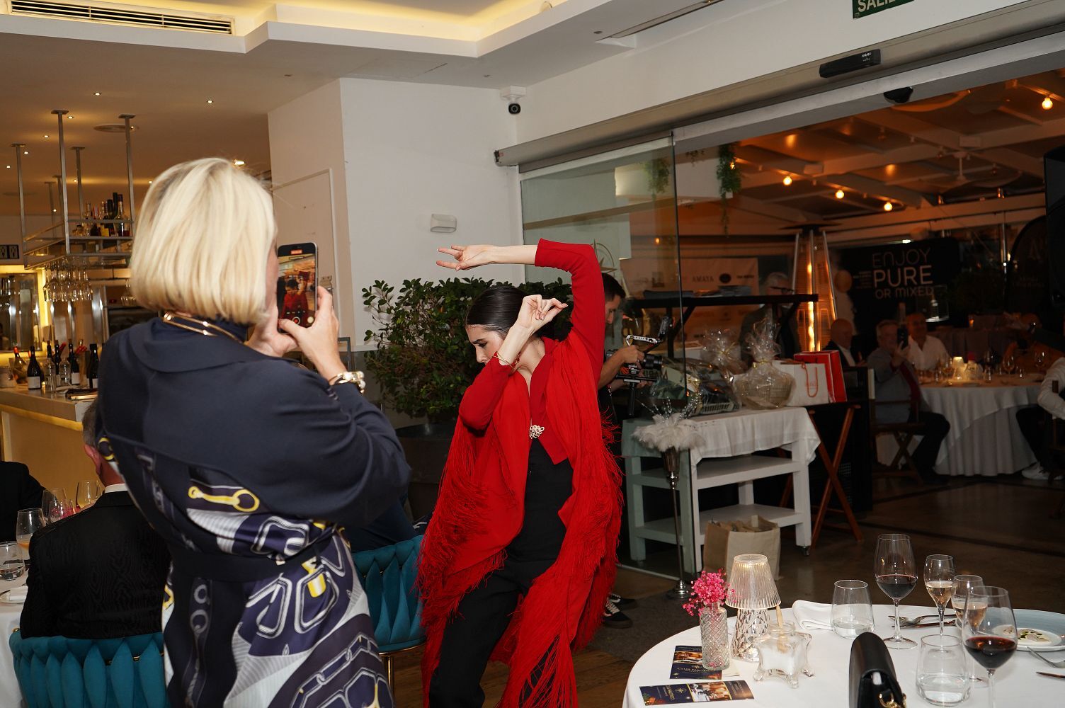 Durante el transcurso de la cena pudimos disfrutar de la actuación de la bailarina María Arranz, una profesional de la danza española que hizo las delicias del respetable, así como asistimos a un pase de modelos y sombreros de lujo, cortesía de la tienda Amber Hats.