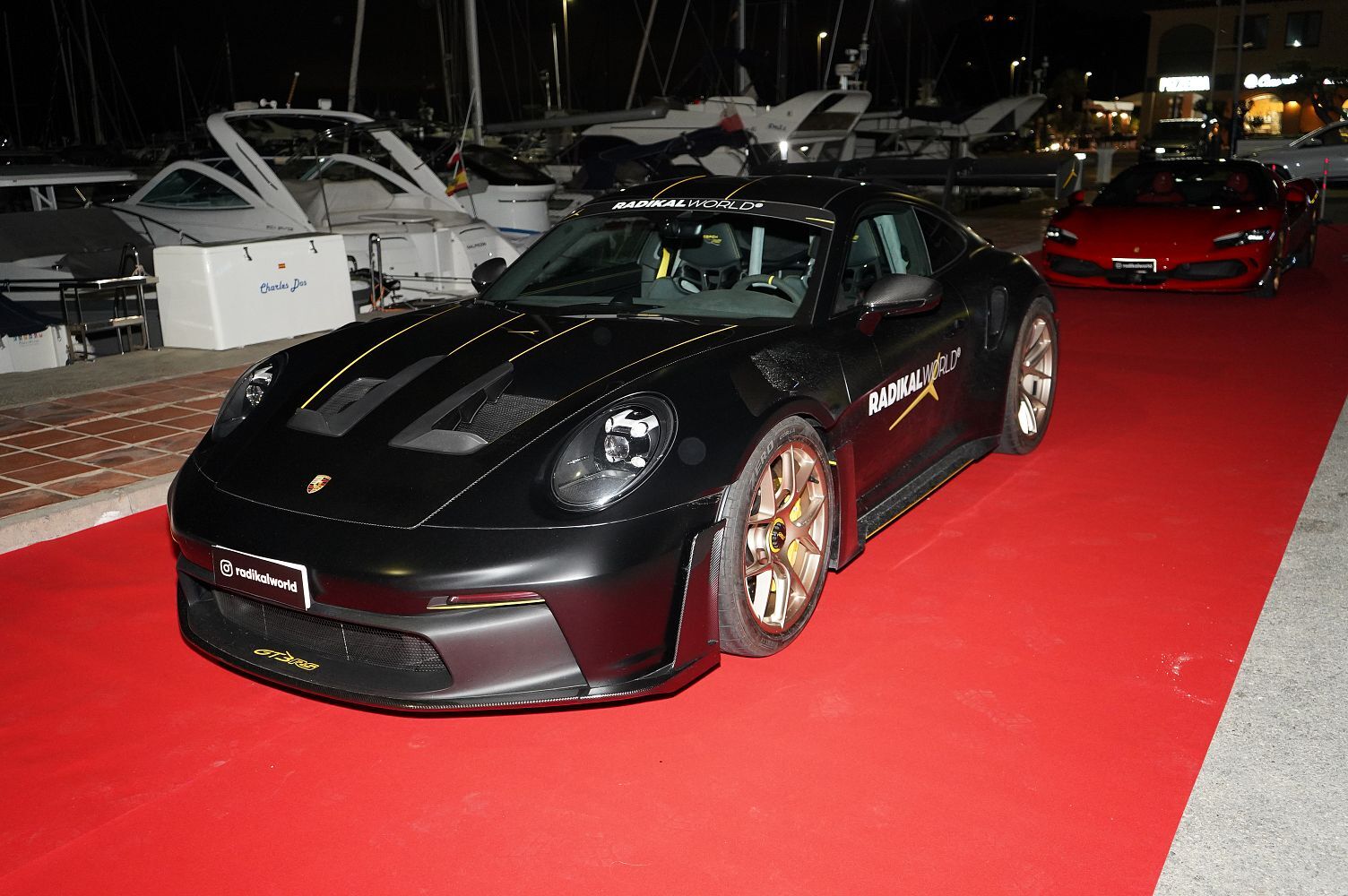 “Lo que podéis ver aparcado en la entrada es una pequeña muestra de lo que es RadikalWorld, una empresa que se dedica a la venta y alquiler de coches súper top”, nos dice Martín López, CEO de la compañía. “Ahora mismo hemos traído para la exposición un Porsche GT3 RS 2025, el mejor coche del mundo para circuito”.