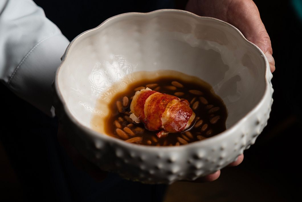 El menú degustación es una cascada de sensaciones y sorpresas. Es bastante extenso, así que voy a destacar algunos de los platos más impactantes: Flor de tinta de calamar con tartar de gamba roja; Brioche tostado con trufa, caviar y foie a baja temperatura; Ensalada líquida con ventresca en escabeche de plancton; Anguila con crema de brioche, levadura y toffee de ajo con habas tostadas a la llama; Pastrami de prensa ibérica con cebolla tostada y un delicioso Arroz con bogavante reducido con espuma y piñones.