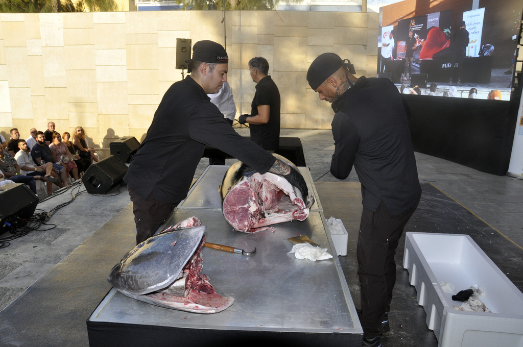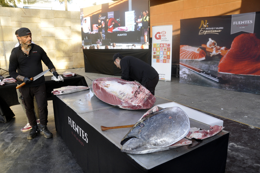 “Hemos elegido el atún porque es un animal que ahora mismo está en un momento muy bueno”, nos dice Pedro Juan Sanjuan, CEO de las Bodegas Fincal y uno de los organizadores del evento. “Queríamos algo muy visual, muy llamativo, y la respuesta del público es muy positiva”.