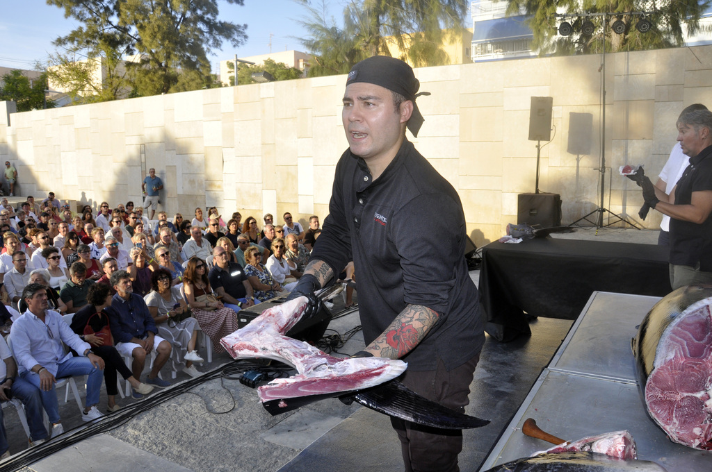 A su lado, retransmitiendo en directo este espectáculo al público, se encontraba Juan Pablo Nicolás. “Para mí esto es un arte, hay que saber dónde meter el cuchillo, que el lomo quede perfecto, y saber luego para qué sirve cada parte. Hay que tener en cuenta que del atún se aprovecha prácticamente todo, desde la cabeza a la cola”.